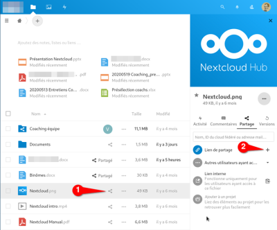 Nextcloud vous offre la possibilité de partager des documents et des dossiers avec d'autres utilisateurs, ou encore par lien pour des personnes sans compte. La gestion des droits d'accès et de modification se fait de manière fine.